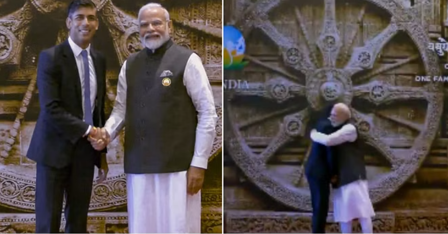 जी20 सम्मेलन में ब्रिटेन के पीएम ऋषि सुनक से पीएम मोदी ने गर्मजोशी से मुलाकात की। पीएम मोदी ने ऋषि सुनक से पहले हाथ मिलाया और फिर उन्हें गले से लगा लिया। दोनों नेताओं ने काफी देर तक बात भी की और तस्वीरें भी खिंचवाए।