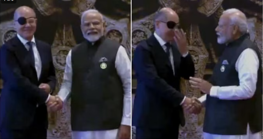 जर्मनी के चांसलर ओलफ स्कोल्ज जी20 सम्मेलन में आई पैच पहनकर पहुंचे। पीएम मोदी ने पहले हाथ मिलाकर उनका स्वागत किया और फिर उनके आई पैस पर बात भी करते दिखे।