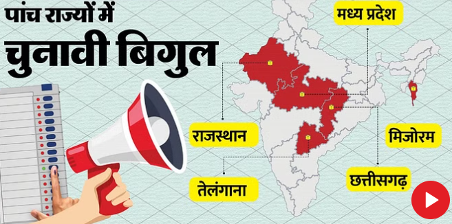 निर्वाचन आयोग ने आज यानी सोमवार दोपहर 12 बजे एक अहम प्रेस कॉन्फ्रेंस की। इस दौरान पांच राज्यों में होने वाले चुनावों का एलान कर दिया गया। मुख्य चुनाव आयुक्त राजीव कुमार ने मध्य प्रदेश, राजस्थान, छत्तीसगढ़, तेलंगाना और मिजोरम विधानसभा चुनावों की तारीखों के बारे में विस्तार से बताया। सभी राज्यों के चुनाव परिणाम तीन दिसंबर को आएंगे।