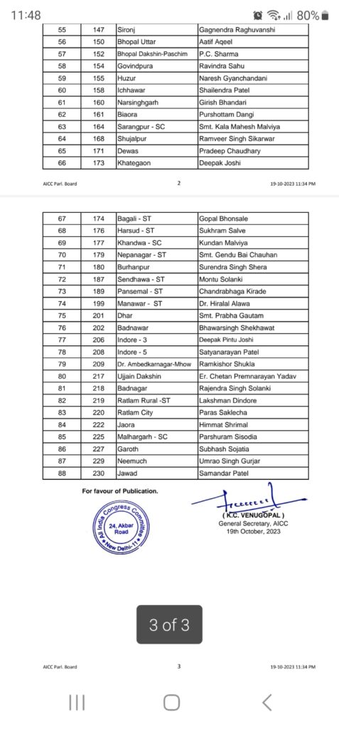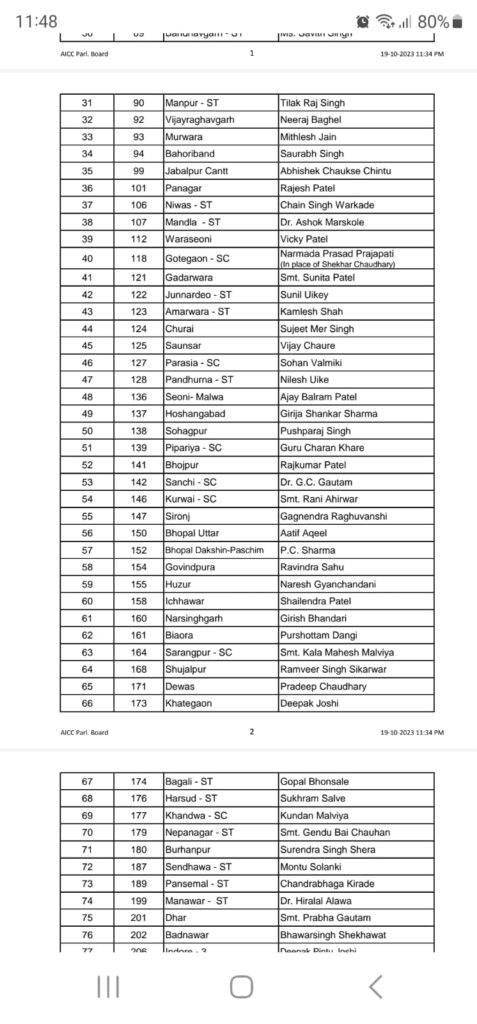 कांग्रेस की सूची जारी इंदौर की विधानसभा 3 से पिंटू जोशी 5 से सत्तू पटेल और महु से रामकिशोर शुक्ला