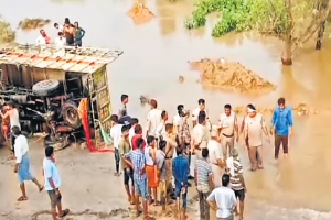 दतिया में एक मिनी ट्रक नदी में गिर गया। मिनी ट्रक में करीब 50 मजदूर...