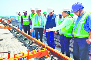 पटरियां बिछाने के काम का विधि-विधान के साथ…….. शहर में मेटो ट्रेन दौड़ाने के काम...