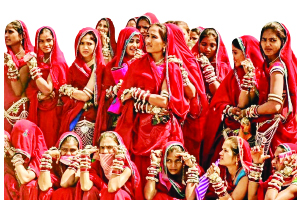 सांस्कृतिक आभूषणों (तागली, कमरबंद, हाथ कड़े, रमझोल, पायल) व अलग-अलग रंगों वाली रंग-बिरंगी पोशाखें पहने...